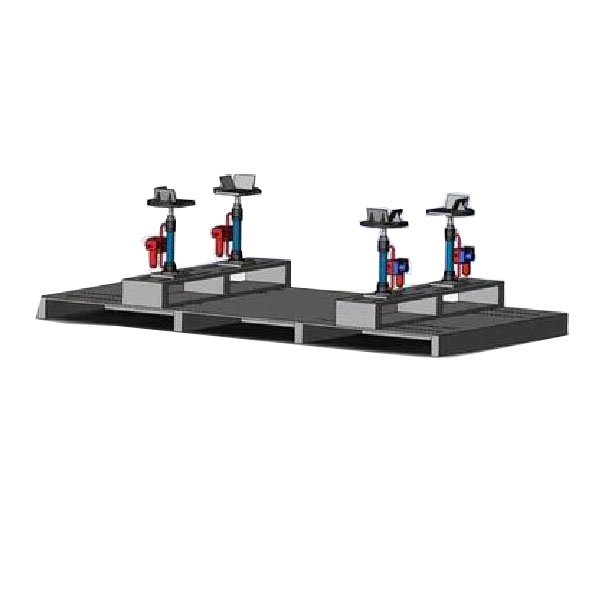 四立柱整车振动试验台在垂直方向布有4个作动缸,主要用于全路面汽车路谱仿真试验。该系统推力大,能准确模拟再现汽车在实际道路运行时的振动环境,从而可以评价汽车悬架系统的安全性以及驾驶的舒适性。该系统结构紧凑,满足用户所要求的性能指标,可按照客户的需求,安装在地基上,或安装于可移动的质量块上。