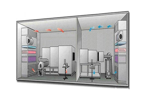 空气再调节处理系统主要由空调柜体、风机、加热器、加湿器、制冷系统等组成。其作用是对焓差试验室的室内的空气状态进行调节,达到测试时所需的工况条件。