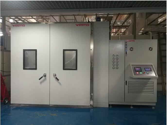 房间隔离式老化房房间尺寸均根据客户要求设计,进出门采用保温推拉门或双开保温门,另根据需要可设置观察窗,方便在室外观察到室内产品测试情况。如需电源提供则在方便操作的位置安装电源插座,以满足产品老化测试时的需要,特点:对产品的样式与台车的样式要求低,活动空间大,结构简单,成本较低。